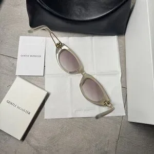 Gentle Monster Creamy Clear Sunglasses Gold Detail Trendy