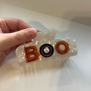 add a spooky touch to your outfit with this halloween 'boo' hair clip, featuring vibrant orange & black colors, it's perfect for festive occasions!