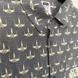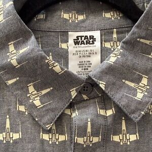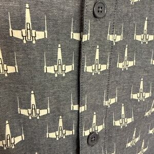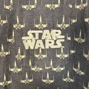 Show off your Star Wars passion with this Star Wars 2025 Disney Park release featuring all over patterns of X-Wing Starfighters on a charcoal background. The classic Star Wars logo is embroidered on the front. Perfect for casual wear this Spring. Washable cotton