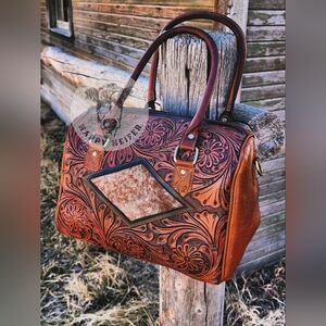 Genuine Cowhide And Handtooled Leather Speedy Bag