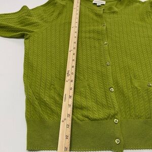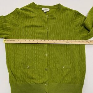 Brighten up your OOTD with this stunning Free Assembly cardigan! The lime green hue is absolute perfection for spring and summer layering. It features a beautiful pointelle cable-knit design and darling scalloped edges for a touch of "coquette" aesthetic.