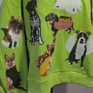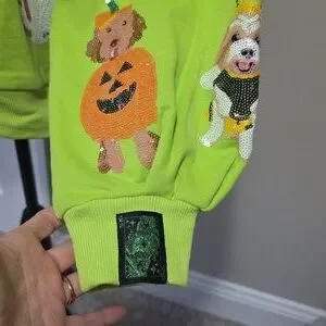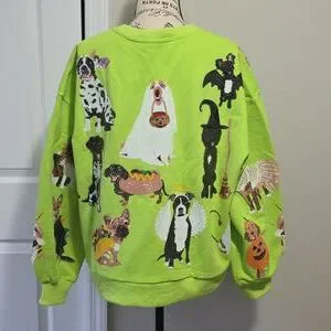 Queen of Sparkles Limited Edition Halloween Dogs Lime Green Sweatshirt Small