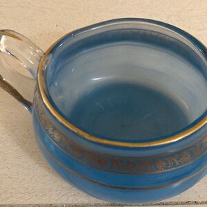 Vintage Blue and Gold Glass Creamer and Sugar Set