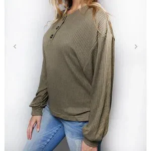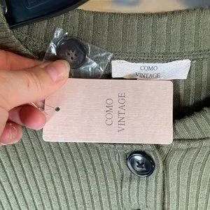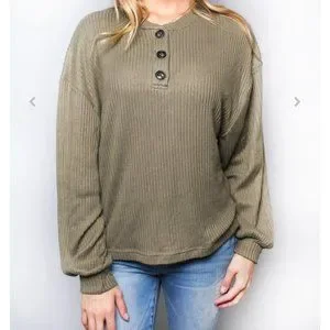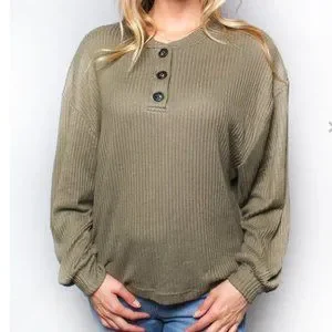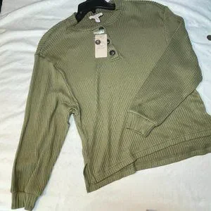 Brand new with tags! Cool oversize buttons and henley style, super soft ribbed knit and the green of the season! Spare button included.