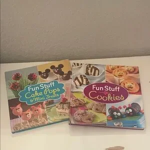 Discover creative baking with the Fun Stuff Cake Pops & Cookies book set. Featuring vibrant covers in blue and purple, these books offer delightful recipes for kids.