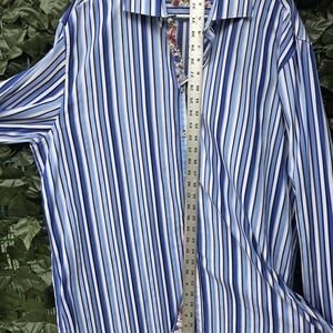 Gently used, men's Poggianti 1958 made in Italy long sleeve button up shirt. Blue striped. Size XXl. Thanks for looking.