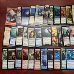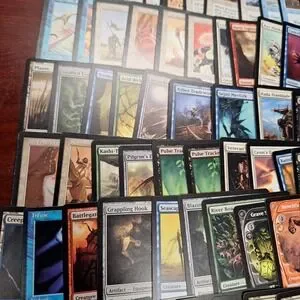 This Magic The Gathering card lot includes 163 cards from the Zendikar set, with a mix of Commons, Uncommons, and Rares. The cards are in excellent condition and are from the year 2000, making them vintage items for collectors. The red cards in the lot are standard-sized Creature cards in English, manufactured by Wizards of the Coast in the United States. Perfect for fans of Magic: The Gathering looking to expand their card collection with high-quality, vintage cards.