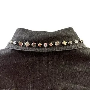 - Embellished collar and chest pockets with silver rhinestones and beads