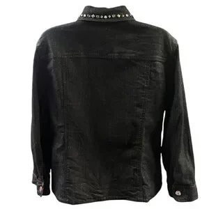 Ruby Rd Jacket 14 Black Embellished Denim 3/4 Sleeve Glam Sparkle Rhinestone