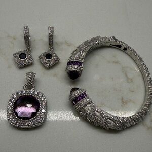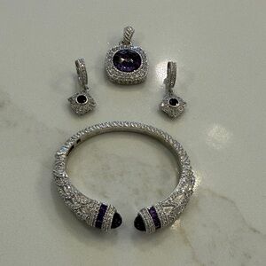 Judith Ripka Sterling Silver Amethyst Aquarius Cuff, Enhancer & Earring set