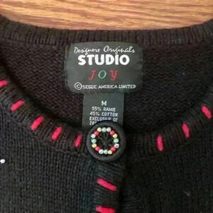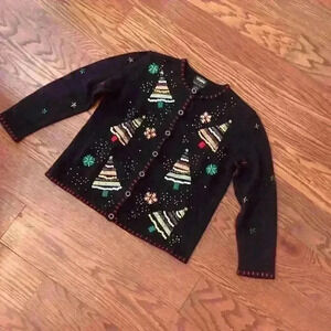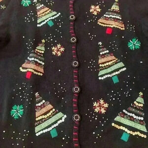 Vintage Christmas Beaded Sequin Sweater Cardigan Size Medium Ugly Christmas