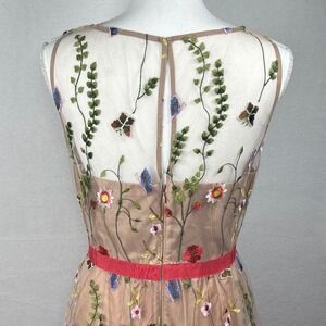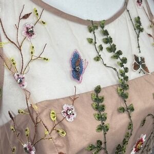 Keywords: Cottagecore, Fairycore, Floral Embroidery, Mesh Overlay, High Low Hem, Garden Party, Wedding Guest, Romantic, Whimsical, Botanical, Formal, Special Occasion, Sleeveless, Illusion Neckline, Colorful Embroidery, Spring, Easter, mesh, beaded, diamonds, luxury, prom dress, formal dress, wedding guest, fairy