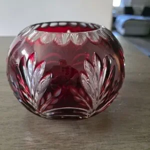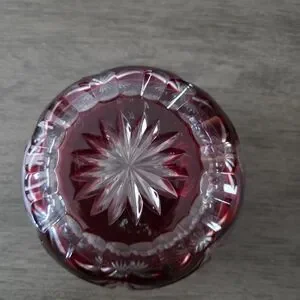 Bohemian Odessa Cranberry Red Cut to Clear Crystal Glass Rose Bowl Vase