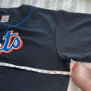 Majestic Black Jersey with Blue and Orange Mets Logo