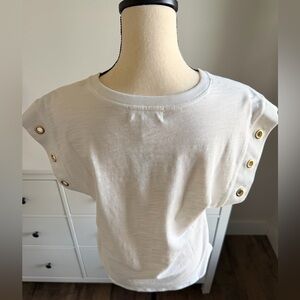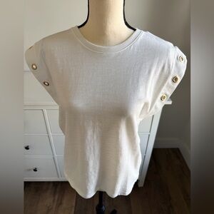 NWT Nation LTD White Muscle Tee with Gold Button Accents