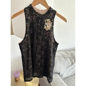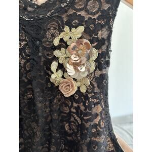 Vitg Sheer Lace Whimsygoth Fairy Goth Top Sequin Floral Applique Sleeveless XL
