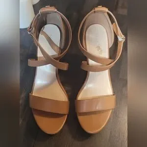 Step out in style with these elegant tan platform sandals. Perfect for any occasion, these shoes offer both comfort and sophistication.
