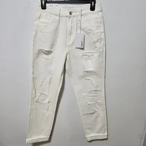 NWT Vervet Women's Emma Denim Distressed Frayed Mom Jeans White Size 26 B22