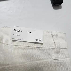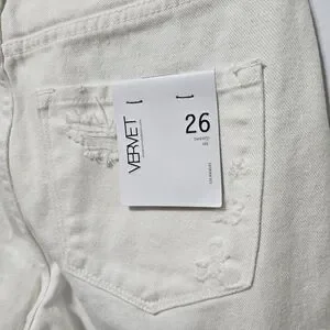 NWT Vervet Women's Emma Denim Distressed Frayed Mom Jeans White Size 26 losses wide casual feminine grunge spring summer B22