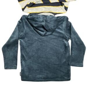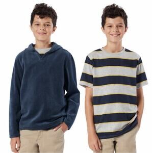 This stylish set includes a navy hoodie and a gray striped t-shirt, perfect for any casual outing. Comfortable and trendy, these shirts are a great addition to your child's wardrobe.