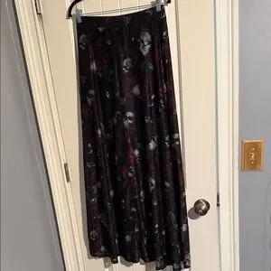 Rare Killstar Skulls Roses an Bats Side Slit Mesh Maxi Skirt M