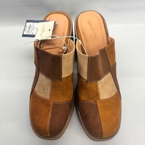 Universal Thread Tess Patchwork Mules Women 8 Brown Suede Block Heel Platform