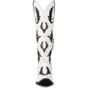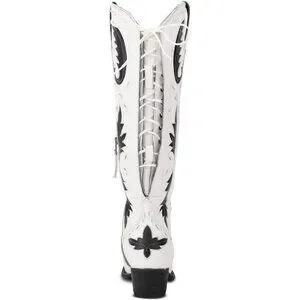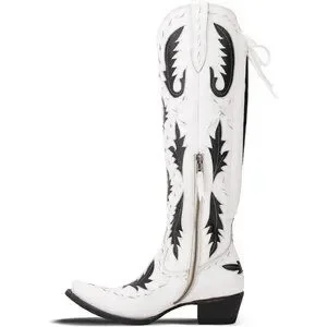 Women's White Pointed Toe Zipper Cowgirl Boots Lace up Chunky Heel Western Boots