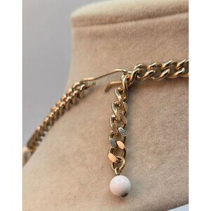 A stylish chunky white chain link necklace featuring a gold-tone adjustable clasp and a white bead accent. Suitable for both casual and formal wear.