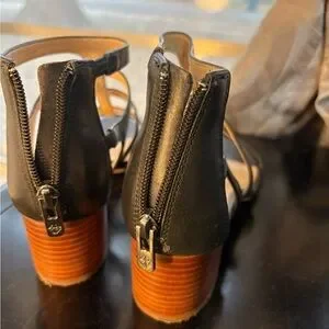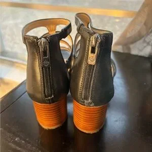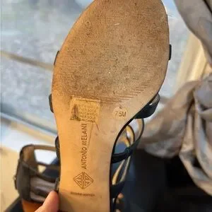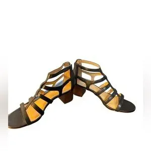 Antonio Melani Black Leather Cage Block Heel Sandals Women’s 7.5