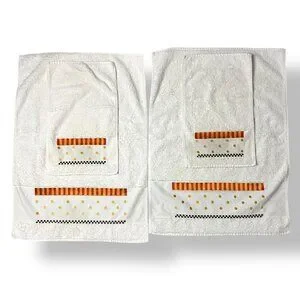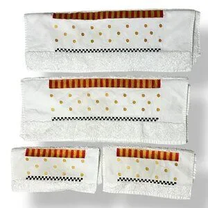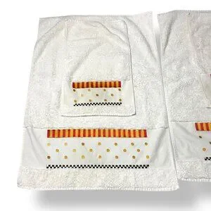 MacKenzie Childs Towel Set: 2 Bath Towels, 2 Washcloths Embroider Courtly Check