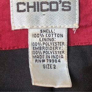 CHICO’S 100% Cotton Embroidered Boho Two Button Up Jacket