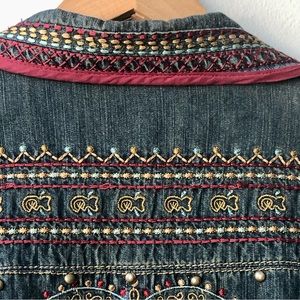 All over embroidered jacket with various patterns.