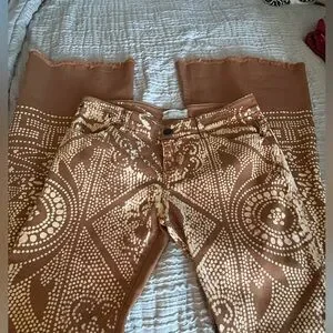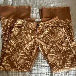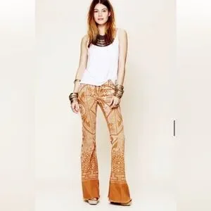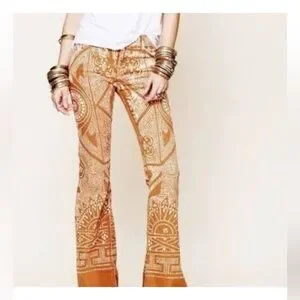 Gorgeous Free People Discharge Bali Flare Jeans in tan/orange, size