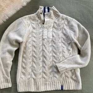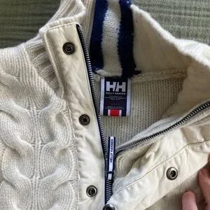 Helly Hansen Wool Cream white Cable Knit collared Sweater L