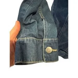 Keywords: Tudor Court, denim jacket, floral embroidery, women's jacket, casual wear, spring jacket, blue jacket, cotton jacket, button closure, embroidered accents, versatile jacket, mid-length jacket, long sleeve jacket, machine washable, pre-owned.