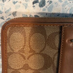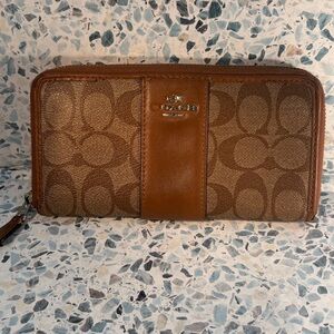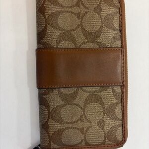 Coach Tan and Brown Signature Zip Wallet PROJECT