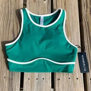 KimberlyC M Green/White Sports Bra! NEW!