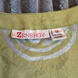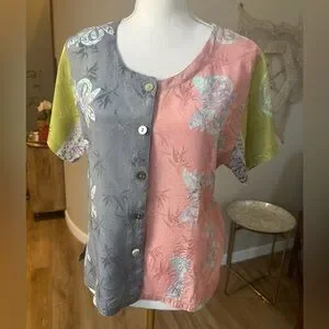 Chicos Zenergy Asian Inspired Button Down Short Sleeve Blouse Top
