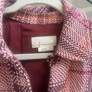 Chic plaid utility jacket by Anthropologie. Features a stylish blend of pink and red. Perfect for casual outings.