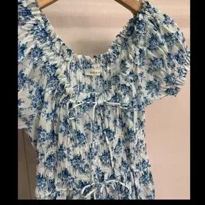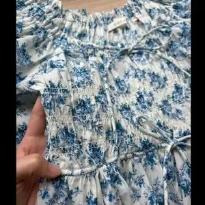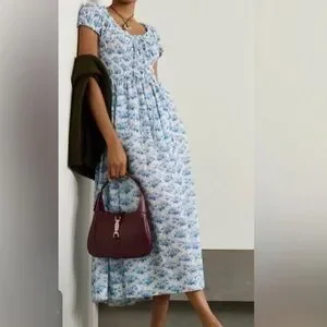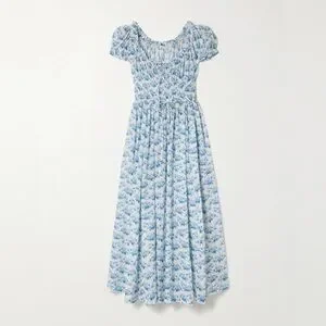 Doen Ashlynn tie-detailed floral-print organic cotton voile midi dress NWOT S