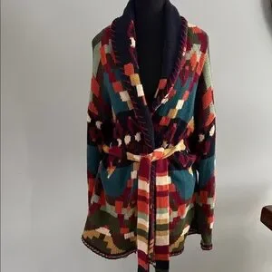 Very heavy, eccentric sweater! Beautiful condition. Length is 32 inches.