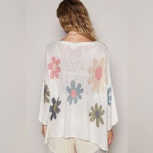POL FLOWER DROPPED SHOULDER LONG SLEEVE KNIT TOP Sz: S