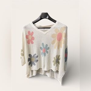 Stylish knit top with vibrant floral design. Lightweight and perfect for layering.