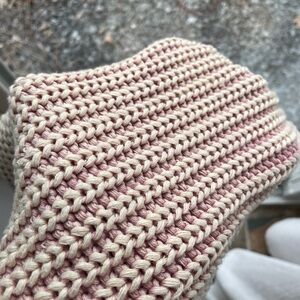 Oh I love this, but it was bought a bit too small Tags and material tag removed but it’s like new, best fits most M for a relaxed fit The weave is cream with underside light pink, so it has a wonderful tone, especially if you have your summer tan Great as a top with a bandeau or bralette too! Approx 18-19” PTP but lots of stretch and deep armholes 19” length Feels like cotton or cotton mix Loose weave, but of weight to it One of their nicer pieces imo