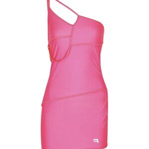Balenciaga hot pink bodycon mini dress crafted in ultra-stretch performance fabric with a sleek, sculpted silhouette. Designed to contour the body with a second-skin fit, this piece channels bold Y2K glam and high-fashion minimalism. Features clean seam detailing, adjustable strap, and subtle logo accent for understated designer recognition.