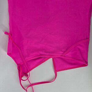 The vibrant neon pink tone makes this a statement piece for parties, date nights, vacation, or high-impact eveningwear. The super stretchy fabric offers comfort while maintaining structure and shape.