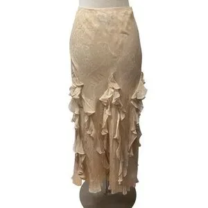 Lauren Ralph Lauren Silk Paisley Ruffled Maxi Skirt M