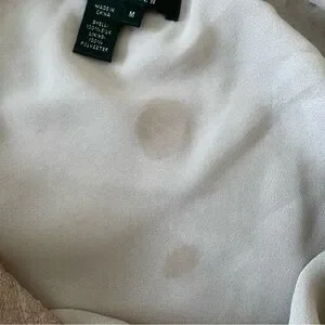 In excellent condition. There are 2 spots on the inside lining (see photo). They don’t go through to the skirt. I am not sure if they will come out.