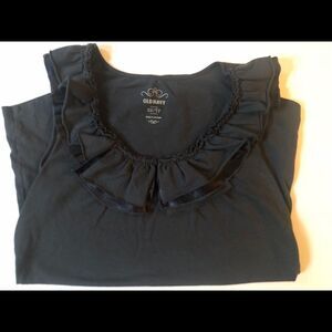 Old Navy Blue Cotton Blend Cotton Blend Top Sz: XS. Length: 26”. Bust: 36”. 60% Cotton/40% Modal. Machine Washable. Satin Accent Ruffle. oldnavy.com