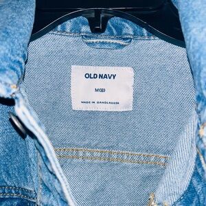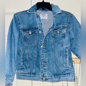 Classic light blue denim jacket from Old Navy. Features button-up front and stylish design.